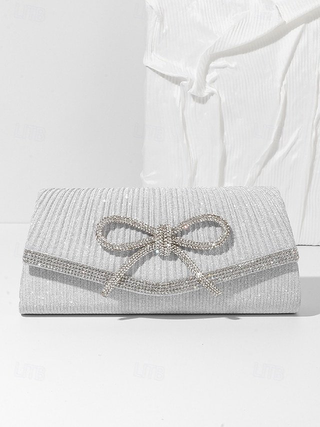 Gender: Women’s, Type: Shoulder Bags, Evening Bag, Material: Polyester, Embellishment: Rhinestone, Bowknot, Pattern: Solid Color, Occasion: Wedding Party, Party, Width (cm): 5, Height (cm): 10, Length (cm): 22, Function: Large Capacity, Multi Carry, Category: Clutch,
