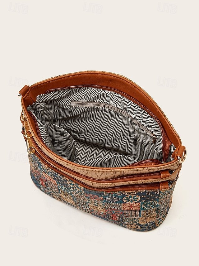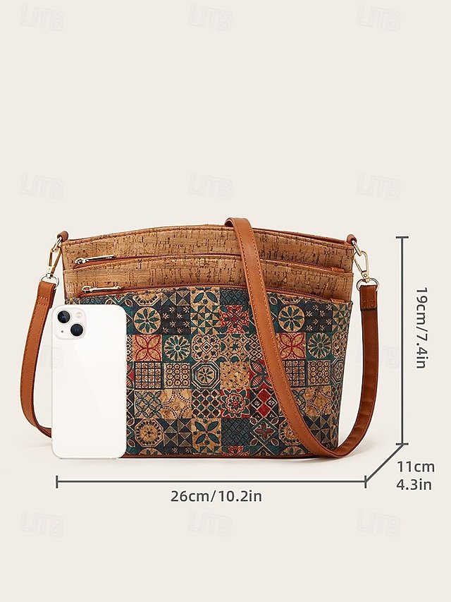 Boho Vintage Crossbody Bag with Geometric Patterns – Lightweight