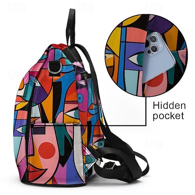 Gender: Women’s, Type: School Bag Bookbag, Material: Polyester, Embellishment: Zipper, Print, Pattern: Abstract Art, Occasion: School, Daily, Outdoor, Width (cm): 31, Height (cm): 34, Function: Waterproof, Large Capacity, Multi Carry, Category: Backpack,