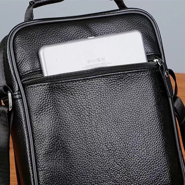 Gender: Men’s, Type: Satchel, Material: Leather, Embellishment: Zipper, Pattern: Solid Color, Occasion: Holiday, Daily, Outdoor, Width (cm): 6.5, Length (cm): 17, Height (cm): 20, Function: Waterproof, Lightweight, Large Capacity, Durable, Category: Shoulder Bag, Crossbody Bag,