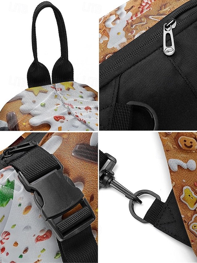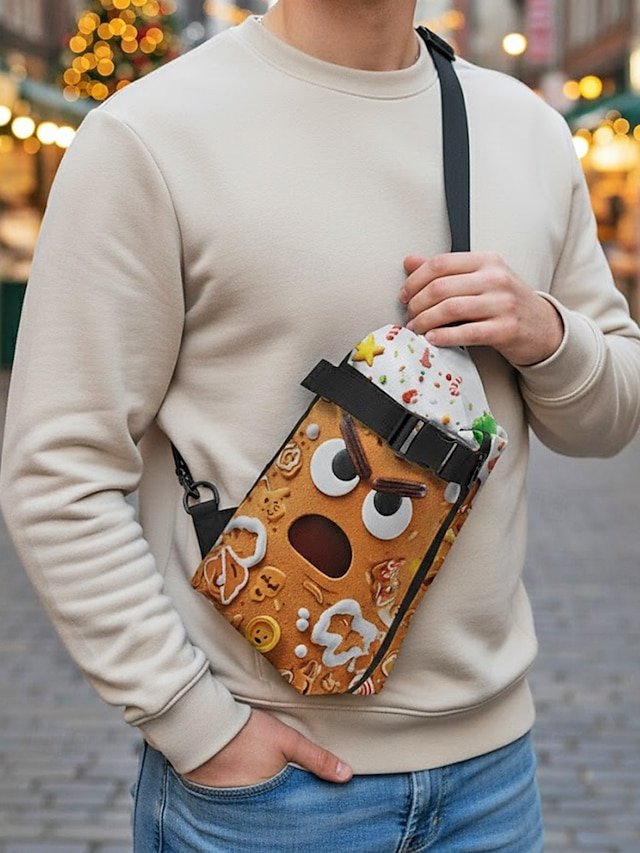 Gender: Men’s, Type: Chest Bag, Crossbody Bag, Material: Polyester, Embellishment: Zipper, Print, Pattern: Gingerbread Man, Santa Claus, Detachable strap: Non-Detachable, Adjustable strap: Adjustable, Occasion: Outdoor, Casual Daily, Christmas, Casual, Width (cm): 15, Height (cm): 32, Length (cm): 16, Function: Lightweight, Large Capacity, Multi Carry, Category: Crossbody Bag,