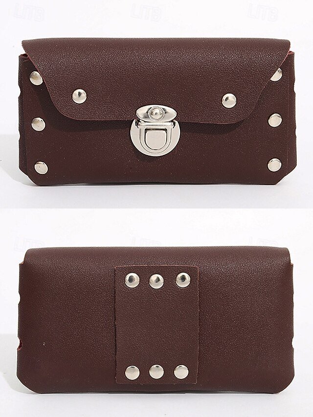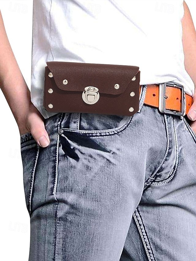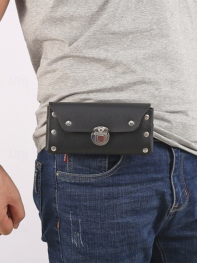 Gender: Men’s, Type: Fanny Pack, Mobile Phone Bag, Material: PU Leather, Embellishment: Rivet, Buckle, Pattern: Solid Color, Occasion: Casual Daily, Outdoor, Width (cm): 1, Height (cm): 8, Length (cm): 17, Function: Waterproof, Category: Accessory bag,