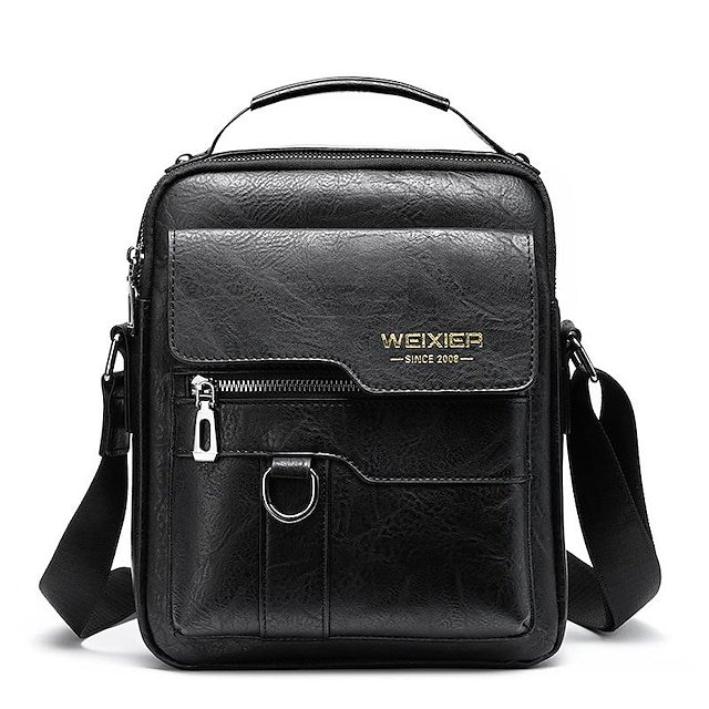 Gender: Men’s, Type: Messenger Bag, Material: PU Leather, Embellishment: Zipper, Pattern: Solid Color, Occasion: Daily, Office, Width (cm): 8, Height (cm): 26, Length (cm): 22, Function: Waterproof, Large Capacity, Durable, Category: Shoulder Bag,
