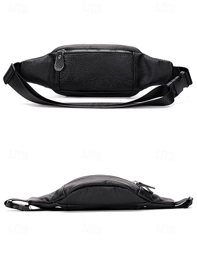 Gender: Men’s, Type: Fanny Pack, Chest Bag, Crossbody Bag, Material: Leather, Embellishment: Zipper, Multiple pockets, Pattern: Solid Color, Detachable strap: Non-Detachable, Adjustable strap: Adjustable, Occasion: Father’s Day, Outdoor, Casual Daily, Casual, Width (cm): 34, Height (cm): 12, Length (cm): 5, Function: Waterproof, Lightweight, Multi Carry, Category: Waist Bag,