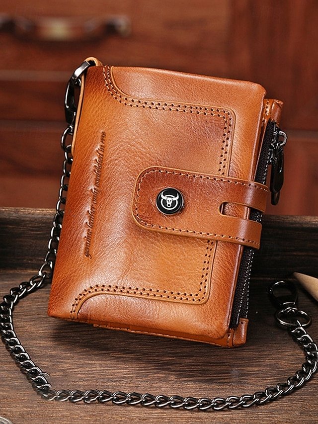 Be the first to review “Men’s Genuine Leather RFID Blocking Wallet with Chain,” Cancel reply