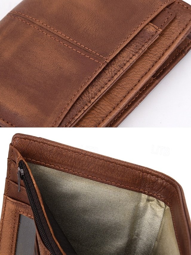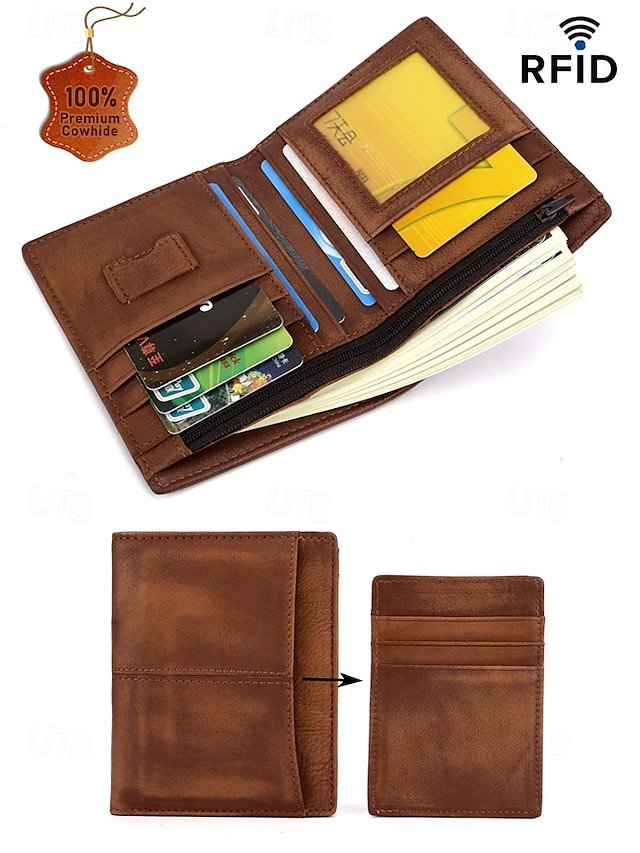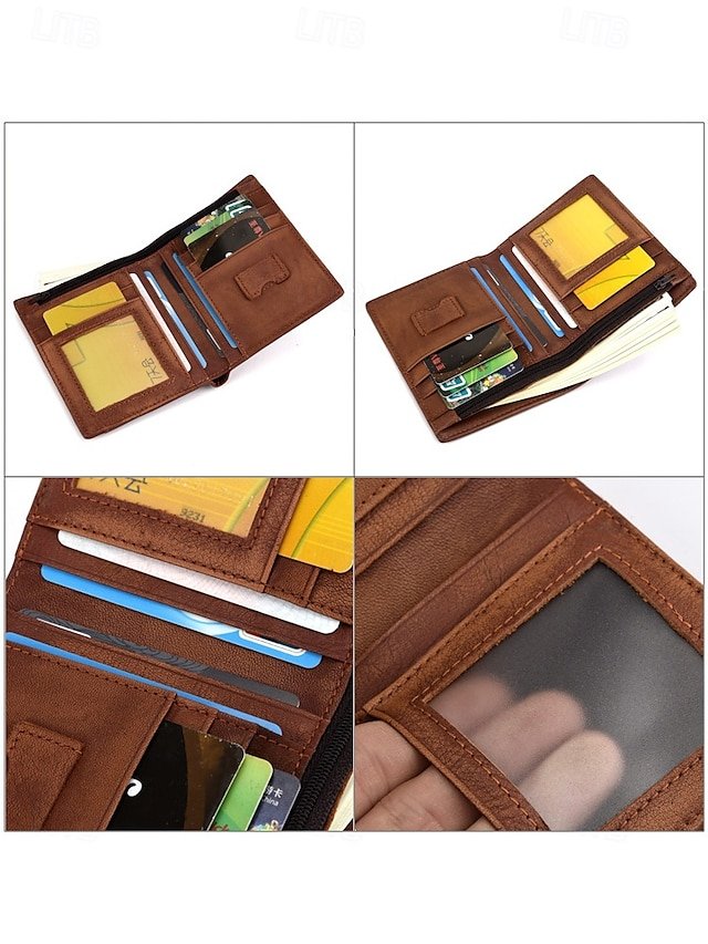 Gender: Men’s, Type: Credit Card Holder Wallet, Material: Leather, Cowhide, Embellishment: Zipper, Multiple pockets, Pattern: Color rubbing, Solid Color, Occasion: Casual, Casual Daily, Office, Width (cm): 2.5, Height (cm): 12, Length (cm): 10, Function: Large Capacity, Durable, RFID Blocking, Category: Wallet,