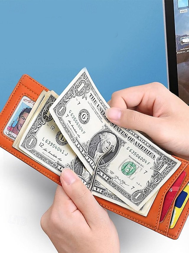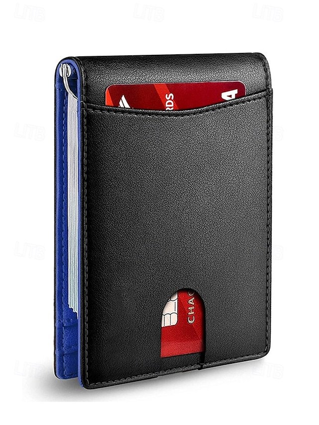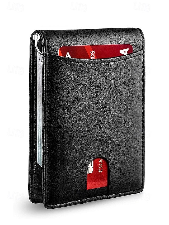Gender: Men’s, Type: Credit Card Holder Wallet, Material: Cowhide, Leather, Embellishment: Embossed, Multiple pockets, Pattern: Solid Color, Occasion: Casual Daily, Office, Width (cm): 1.5, Height (cm): 10.8, Length (cm): 7.7, Function: Large Capacity, RFID Blocking, Category: Wallet,
