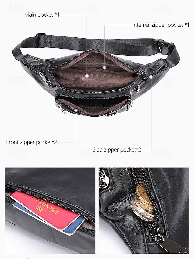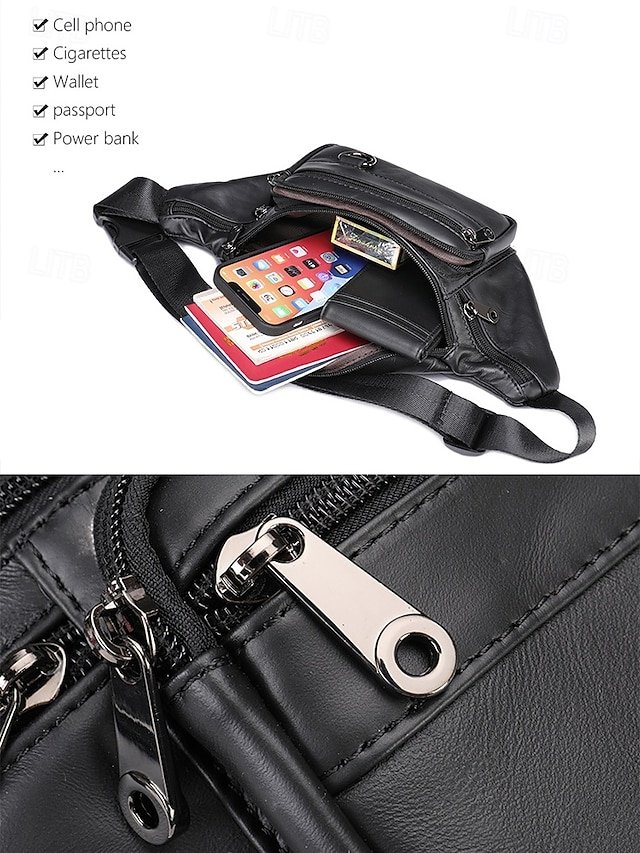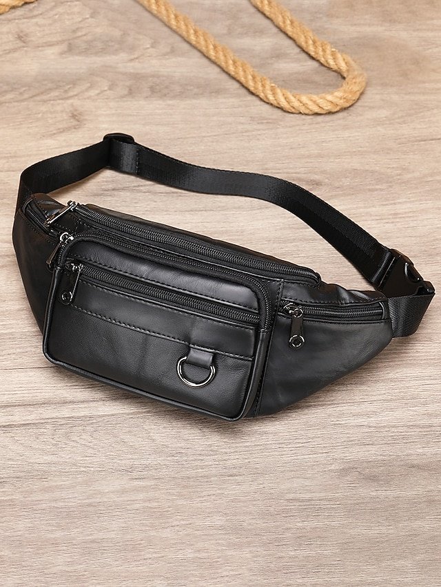 Gender: Men’s, Type: Fanny Pack, Crossbody Bag, Belt Bag, Shoulder Bags, Material: Cowhide, Leather, Embellishment: Zipper, Multiple pockets, Pattern: Solid Color, Detachable strap: Non-Detachable, Adjustable strap: Adjustable, Occasion: Casual Daily, Outdoor, Width (cm): 3, Height (cm): 11, Length (cm): 19, Function: Lightweight, Multi Carry, Category: Waist Bag,