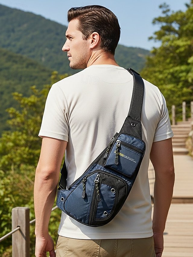 Gender: Men’s, Type: Chest Bag, Crossbody Bag, Material: Polyester, Embellishment: Zipper, Multiple pockets, Pattern: Solid Color, Detachable strap: Non-Detachable, Adjustable strap: Adjustable, Occasion: Father’s Day, Outdoor, Casual Daily, Casual, Width (cm): 21, Height (cm): 40, Length (cm): 3, Function: Waterproof, Lightweight, Large Capacity, Category: Crossbody Bag,