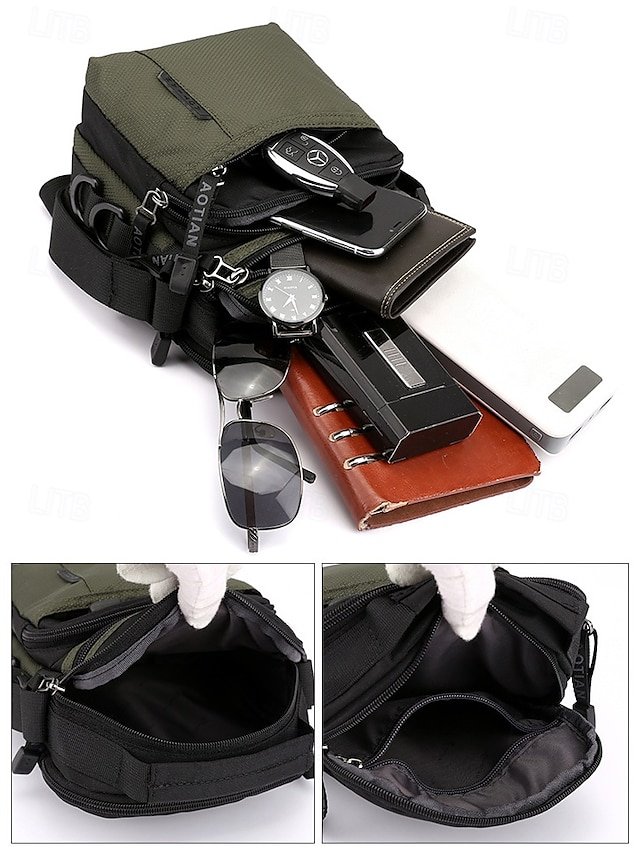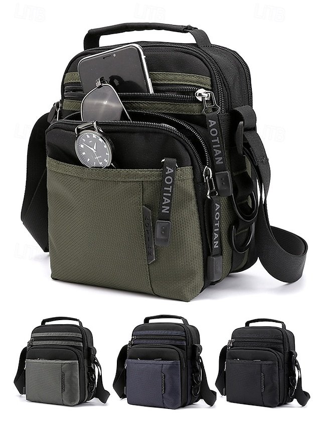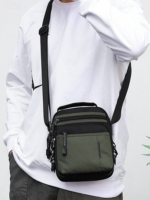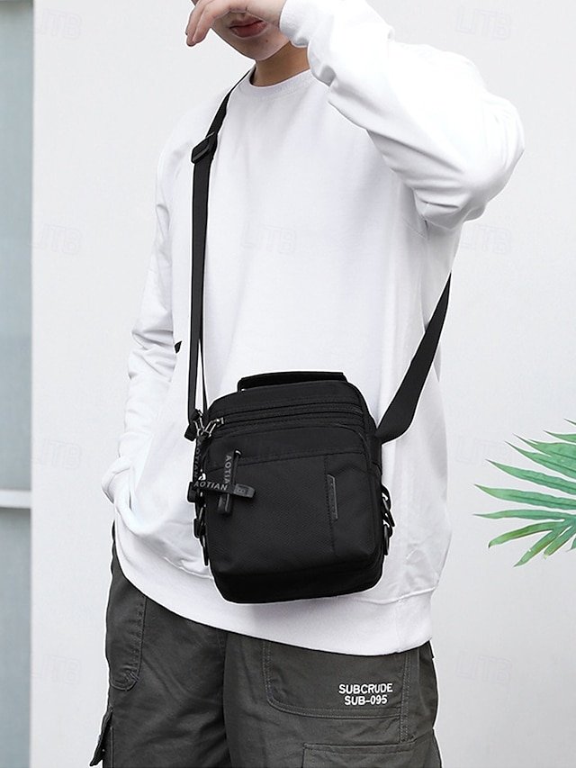 Gender: Men’s, Type: Messenger Bag, Crossbody Bag, Shoulder Bags, Material: Nylon, Embellishment: Zipper, Multiple pockets, Pattern: Solid Color, Detachable strap: Non-Detachable, Adjustable strap: Adjustable, Occasion: Outdoor, Casual Daily, Casual, Width (cm): 11, Height (cm): 21, Length (cm): 17, Function: Waterproof, Lightweight, Large Capacity, Category: Crossbody Bag,