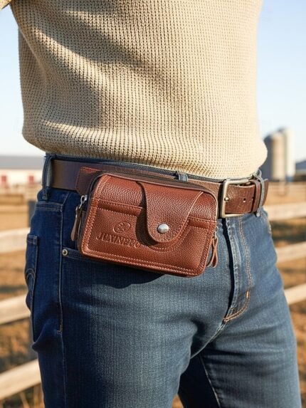 Men’s Leather Belt Bag Wallet – Genuine Leather, Black