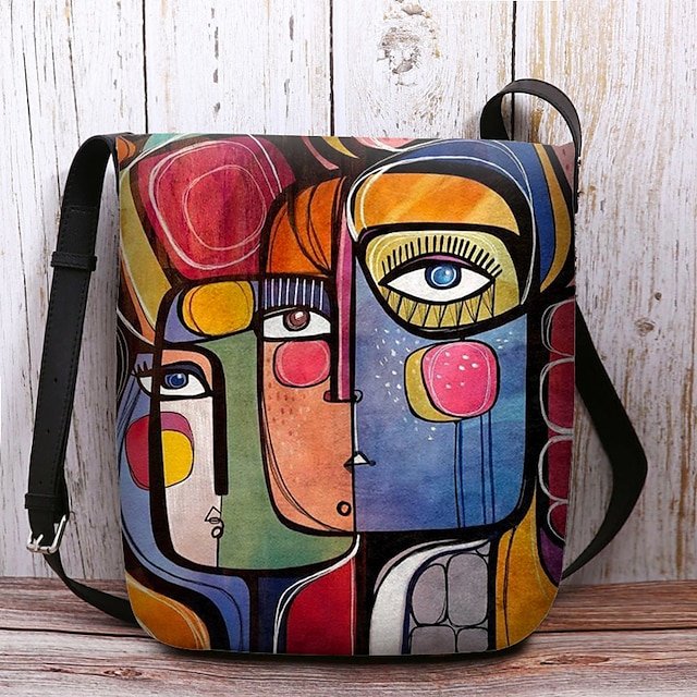 Women’s Abstract Art Crossbody Bag – Colorful Cubist