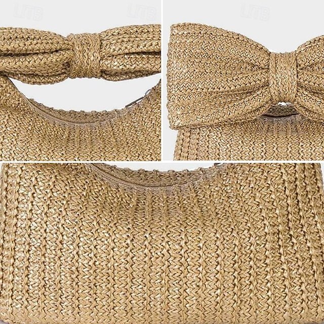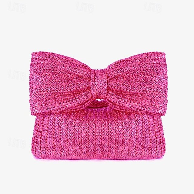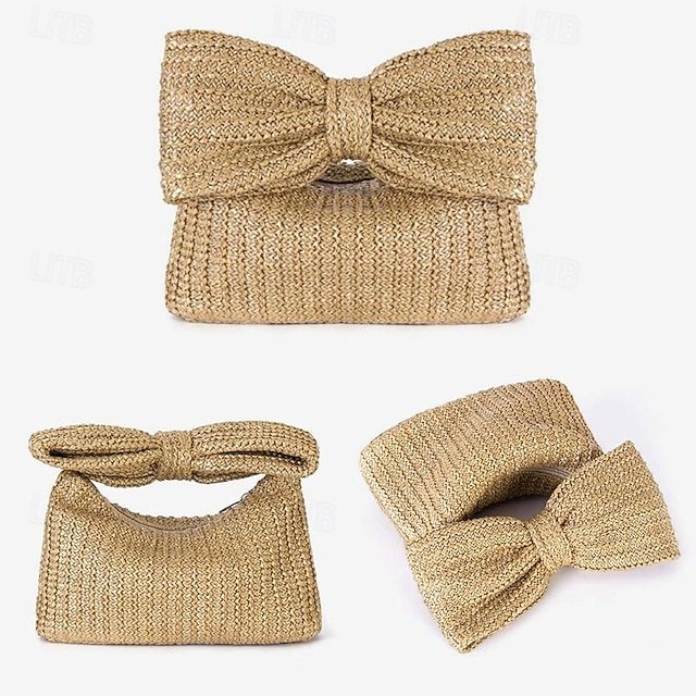 Gender: Women’s, Type: Wristlet, Material: Straw, Embellishment: Bowknot, Pattern: Woven, Detachable strap: Non-Detachable, Adjustable strap: Non-Adjustable, Occasion: Holiday, Beach, Travel, Width (cm): 6.5, Height (cm): 14, Length (cm): 24, Function: Multi Carry, Category: Handbag, Clutch,