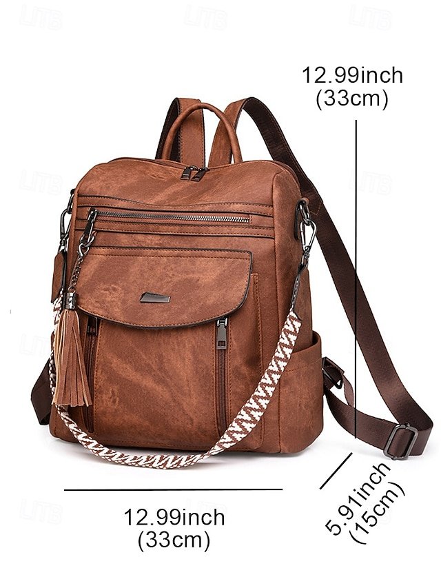Gender: Women’s, Type: School Bag Bookbag, Functional Backpack, Laptop Backpacks, School Backpack Bookbag, Material: PU Leather, Embellishment: Zipper, Pattern: Solid Color, Occasion: School, Daily, Width (cm): 33, Height (cm): 33, Length (cm): 15, Function: Waterproof, Large Capacity, Multi Carry, Category: Backpack,