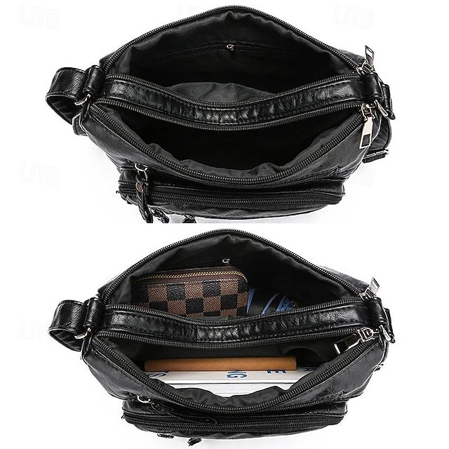 Women’s Faux Leather Quilted Crossbody Bag with Multiple