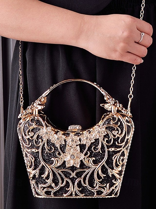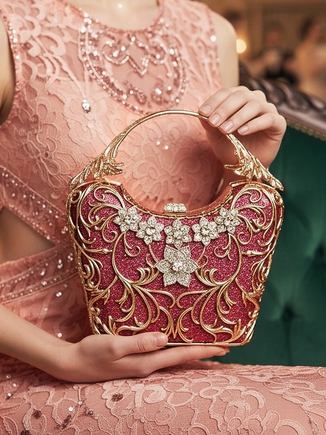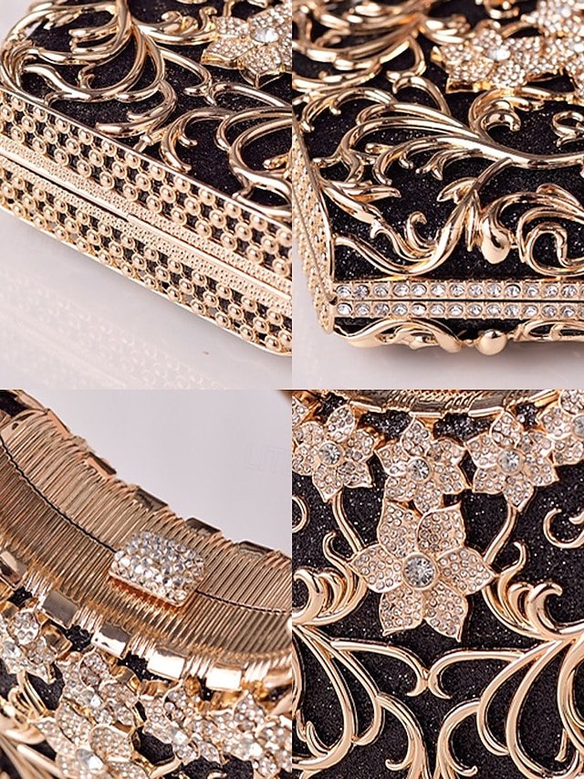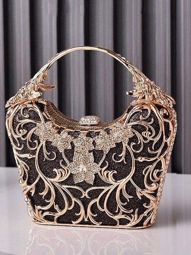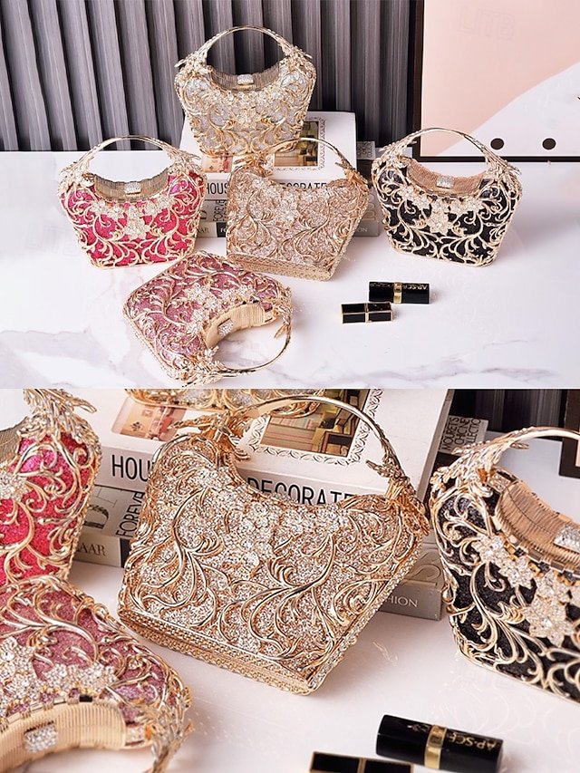 5PCS Elegant Crystal Evening Clutch with Gold Ring Handle –