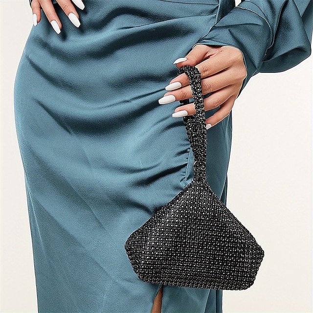 Gender: Women’s, Material: Silk, Synthetic, Embellishment: Crystals, Rhinestone, Pattern: Solid Color, Occasion: Party, Outdoor, Width (cm): 5, Length (cm): 22, Height (cm): 17, Function: Lightweight, Durable, Anti-Shock, Anti-Dust, Category: Evening Bag, Handbag,