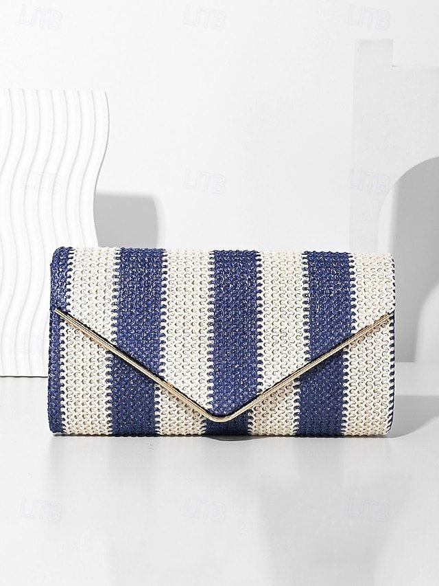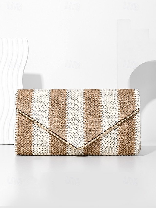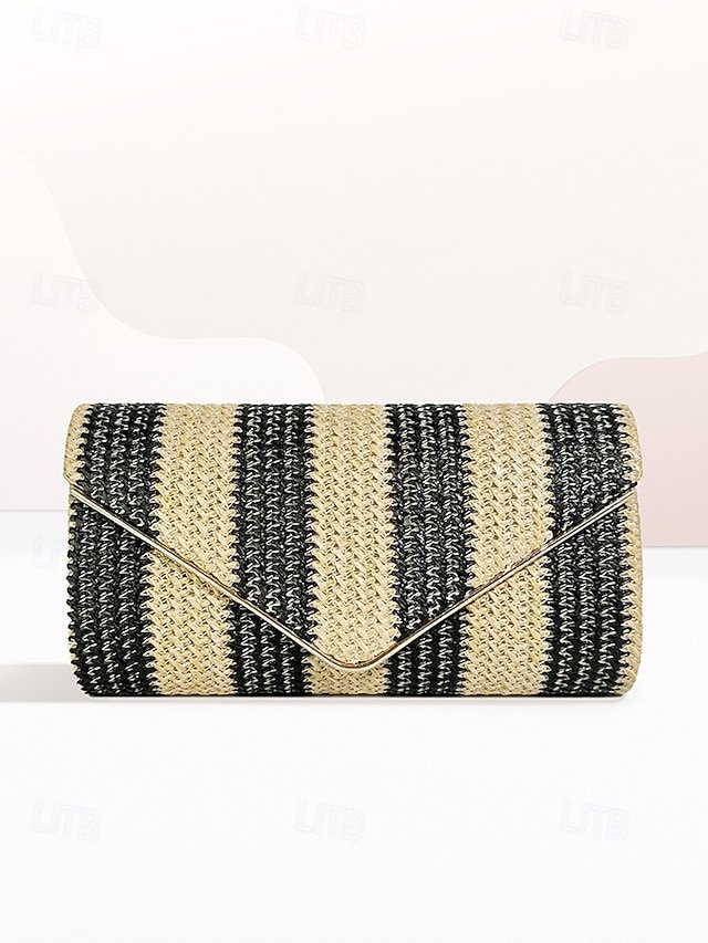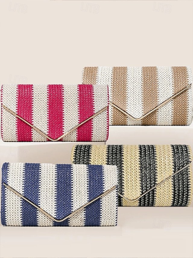 Gender: Women’s, Type: Crossbody Bag, Shoulder Bags, Material: Straw, PU Leather, Embellishment: Chain, Pattern: Striped, Detachable strap: Detachable, Adjustable strap: Non-Adjustable, Occasion: Beach, Casual Daily, Width (cm): 5, Height (cm): 12, Length (cm): 23, Function: Multi Carry, Category: Clutch,