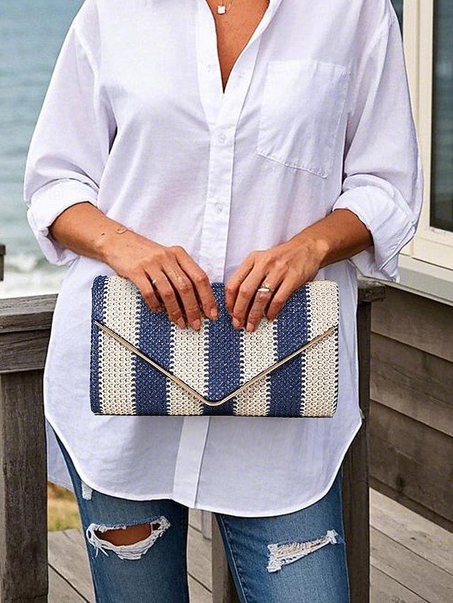 Women’s Striped Woven Envelope Clutch – With chain, can be
