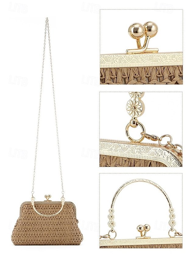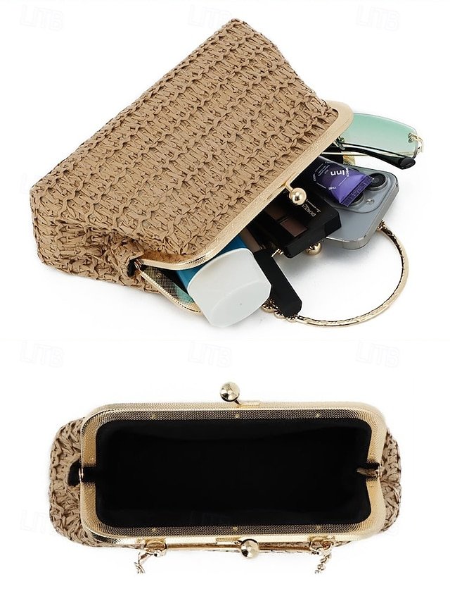 Gender: Women’s, Type: Wristlet, Crossbody Bag, Shoulder Bags, Material: Straw, Pattern: Solid Color, Detachable strap: Detachable, Adjustable strap: Non-Adjustable, Occasion: Beach, Casual Daily, Holiday, Width (cm): 8, Height (cm): 15, Length (cm): 22, Function: Lightweight, Multi Carry, Category: Clutch,