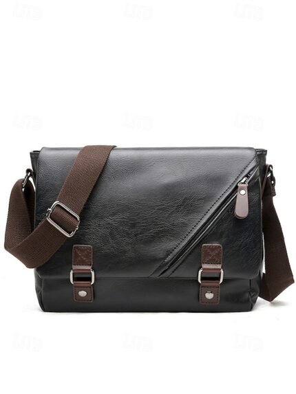 Men’s Faux Leather Messenger Bag – Vintage Business